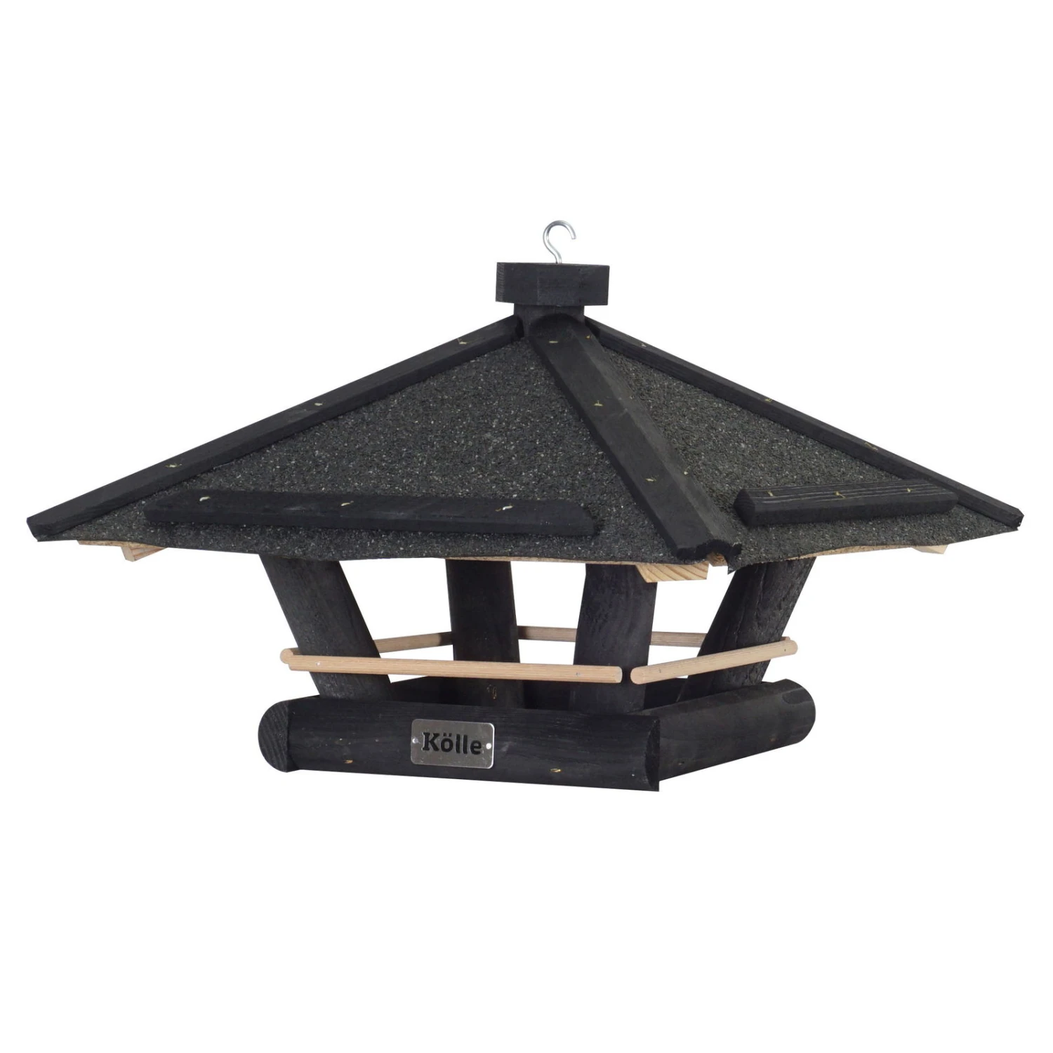 Der Tisch ist gedeckt und alle Wildvögel sind in Ihrem naturfreundlichen Garten oder auf dem Balkon herzlich willkommen. Dieser Futterspender aus Kiefernholz mit Bitumendach lässt sich werkzeugfrei aufhängen und mühelos mit schmackhaften Sämereien befüllen. Denken Sie daran, das Vogelfutterhaus regelmäßig zu reinigen.