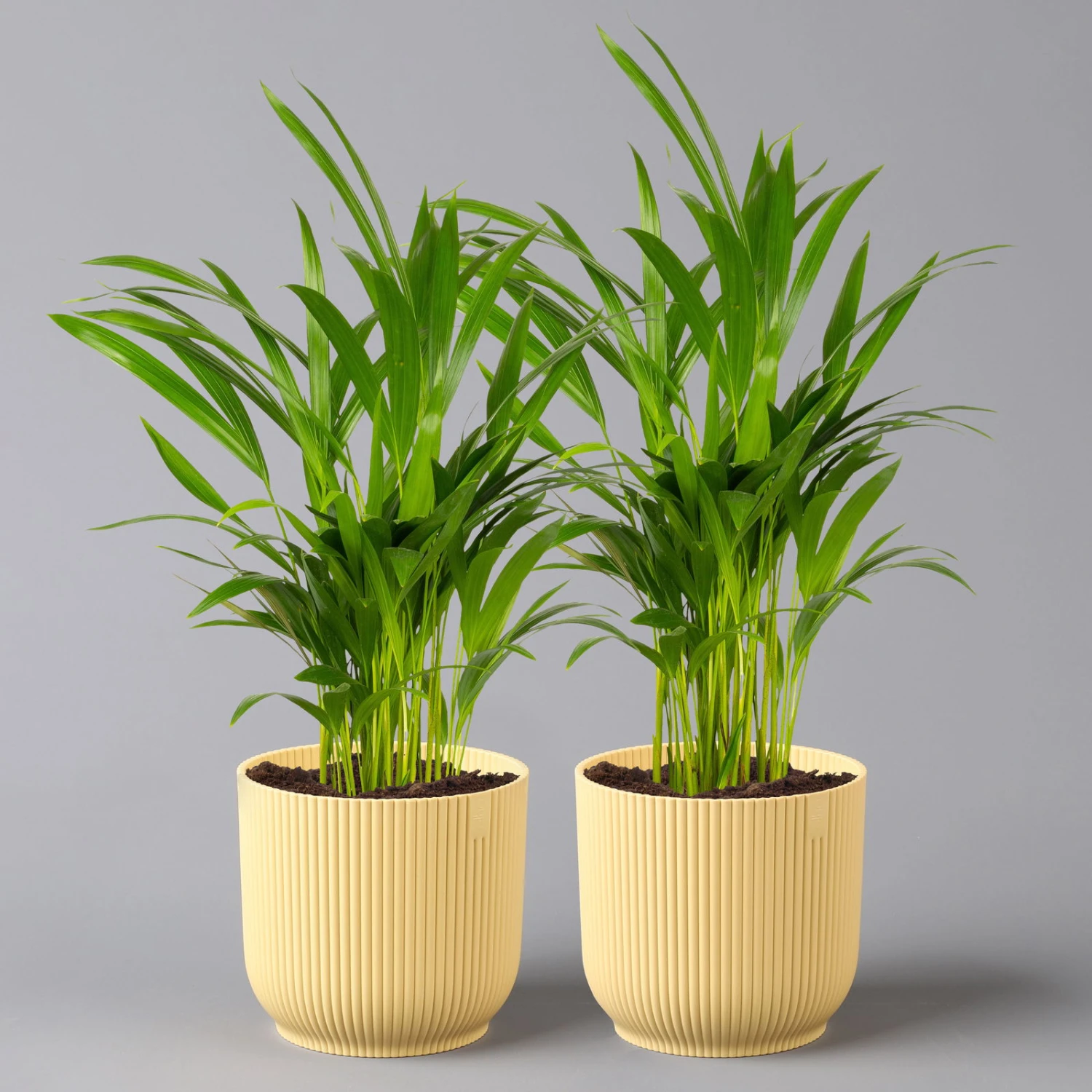 Jede Pflanze wird im Pflanztopf mit 13 cm Durchmesser inkl. Übertopf aus Kunststoff mit 14 cm Durchmesser geliefert.