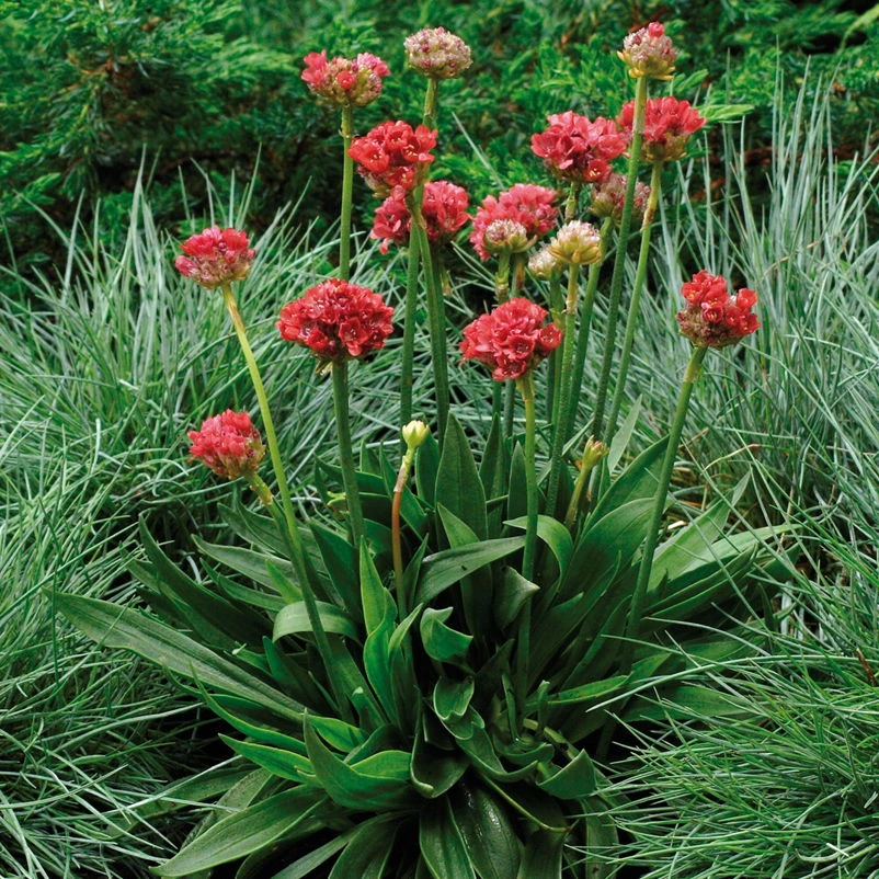 Nicht nur während der Blütezeit ergänzt die dekorative Grasnelke ‚Ballerina Red‘ mit ihrem polsterbildenden Wuchs traumhafte Arrangements im Staudengarten. Sie fügt sich hervorragend in bereits bestehende Pflanzungen ein und lässt jede Menge Spielraum für individuelle Gestaltungsideen und die Verwirklichung Ihrer persönlichen Gartenträume. Diese Grasnelken-Sorte erfreut mit einem besonders frühen Blütezeitpunkt und veredelt das Staudenbeet über lange Zeit mit einer Vielzahl an Blütenstielen, auf denen majestätisch formschöne, runde Knospen thronen.