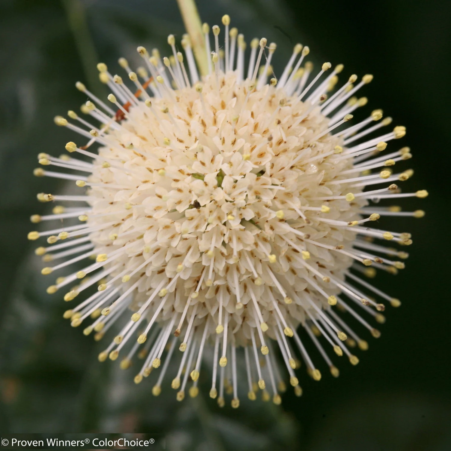 Der Kleine Knopfbusch oder Honigball Cephalanthus occidentalis ‚Sugar Shack®‘ erreicht Wuchshöhen von bis zu 150 Zentimetern und fühlt sich in der Nähe eines Gewässer am wohlsten. Suchen Sie für Ihren Knopfbusch einen sonnigen Platz am Ufer Ihres Gartenteichs oder in einer feuchten, sogar sumpfigen Ecke Ihres Grundstücks aus. Für den richtigen Standort bedankt sich der Honigball mit einer üppigen Blütenpracht seiner kugelförmigen Blüten in Weiß. Der Cephalanthus occidentalis ‚Sugar Shack®‘ gehört zu den Spätblühern, denn seine Saison startet erst im Juli. Noch im September werden Sie die zauberhafte Blütenpracht genießen und sich über eine bunte Schmetterlings- und Bienenschar in Ihrem Garten freuen können.